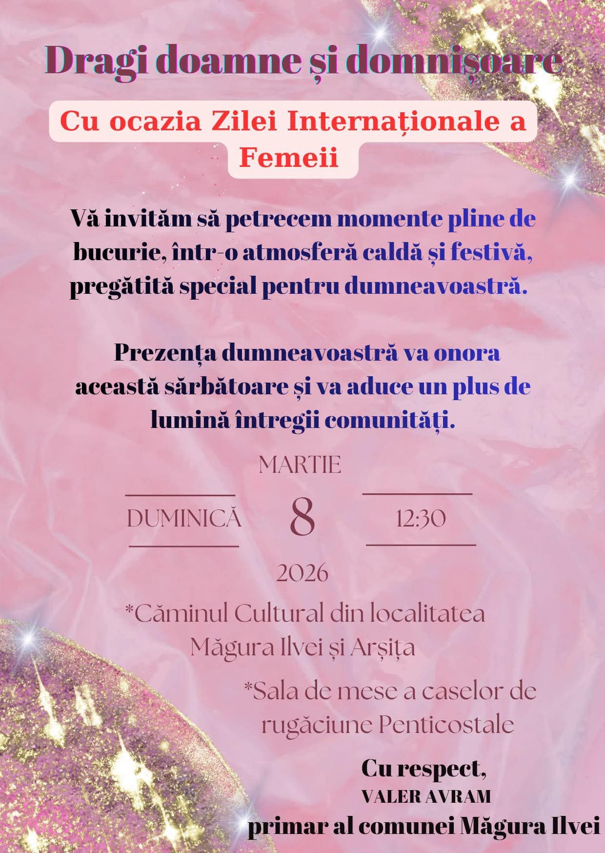 8 Martie, sărbătoare în Măgura Ilvei și Arșița: invitație specială pentru doamne și domnișoare