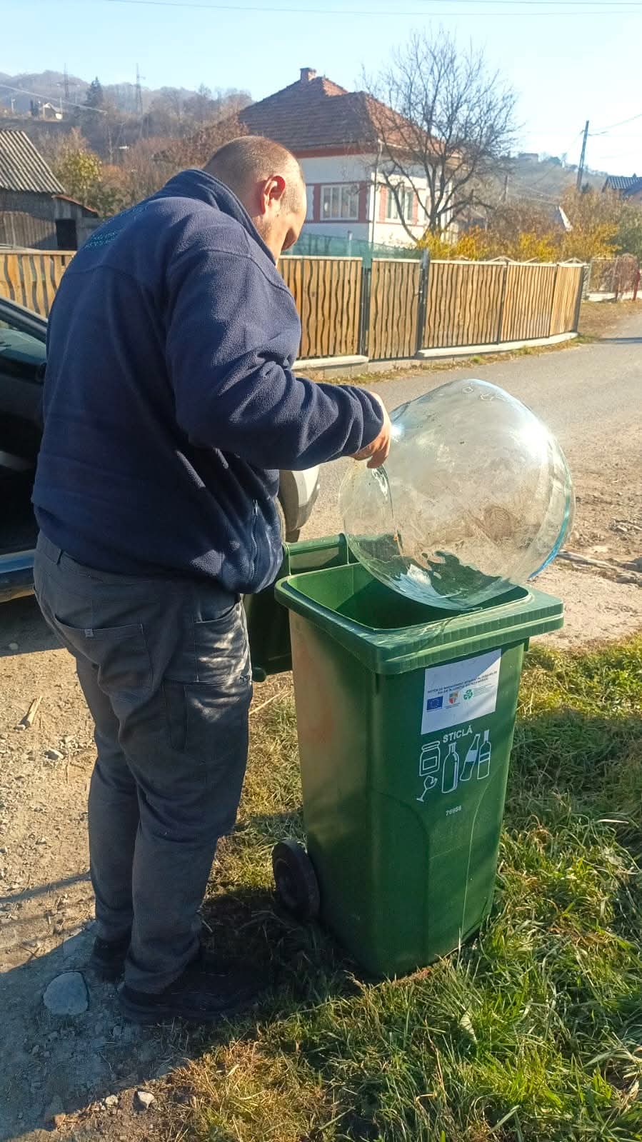 ℹ️ Dacă aveți cantități mai mari de deșeuri reciclabile din sticlă, care nu încap în pubela verde, vă recomandăm să depuneți surplusul de deșeuri în saci transparenți iar operatorul de salubritate va ridica și acești recipienți.