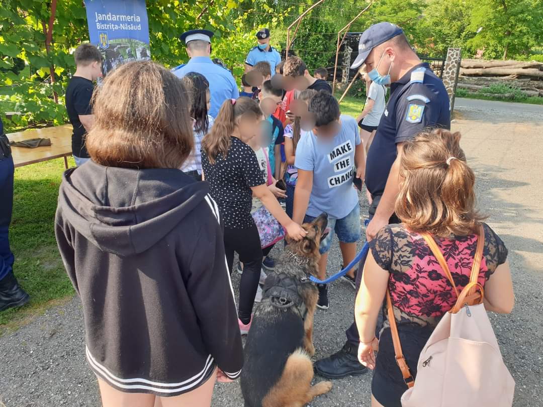 La activități a fost prezent și câinele se serviciu al Jandarmeriei bistrițene – Sașa, una dintre cele mai apreciate prezențe în rândul copiilor care iubesc animalele.