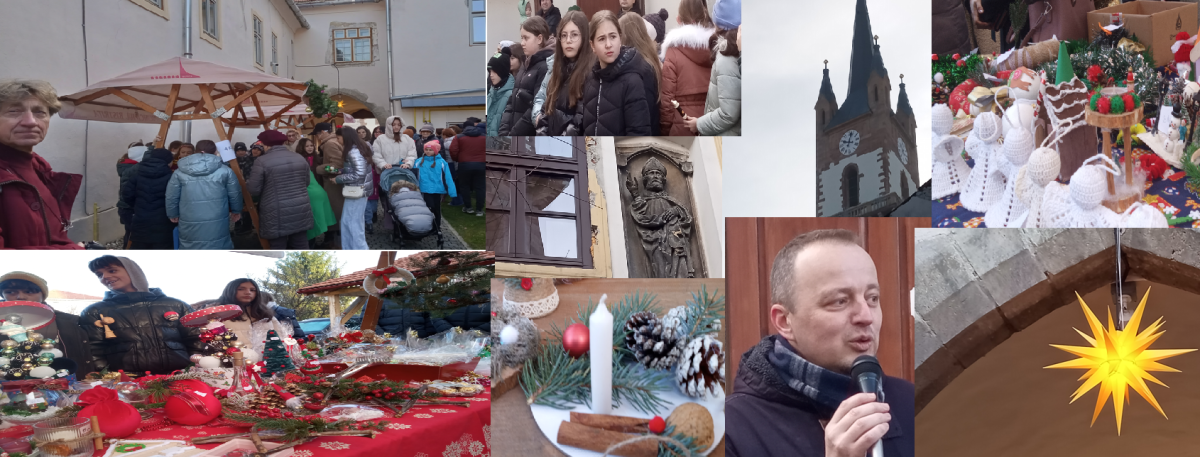 Curtea Parohiei Evanghelice CA din Bistrița s-a dovedit astăzi neîncăpătoare pentru copiii care învață în secția germană a Colegiului Național LIVIU REBREANU (clasele 0-4), Grădinița Germană dar și Grupa de dans a Forumului Democrat German Bistrița. De fapt, în acest spațiu extrem de riguros, de tăcut, serios în restul zilelor din an, și-a dat întâlnire foarte mulți bistrițeni dornici să vadă și ei Bazarul de Advent, un eveniment care își propune să aducă în centrul orașului atmosfera caldă a sărbătorilor, tradițiile comunității și spiritul de solidaritate și comuniune care însoțesc această perioadă.