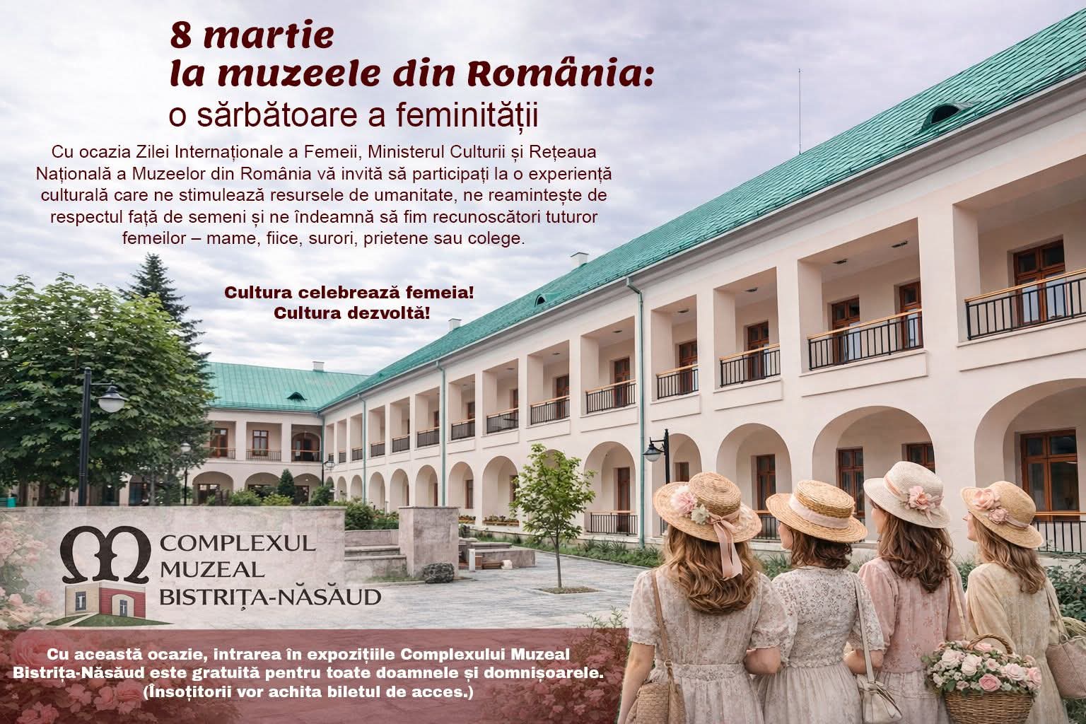 De Ziua Internațională a Femeii, doamnele și domnișoarele sunt invitate să sărbătorească într-un mod special la Complexul Muzeal Bistrița-Năsăud, unde accesul în expoziții va fi gratuit pe parcursul zilei de 8 martie.