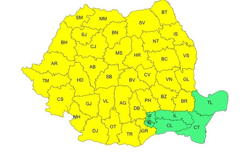 Administrația Națională de Meteorologie (ANM) a emis pentru perioada următoare o nouă atenționare și cod galben de vreme rea.