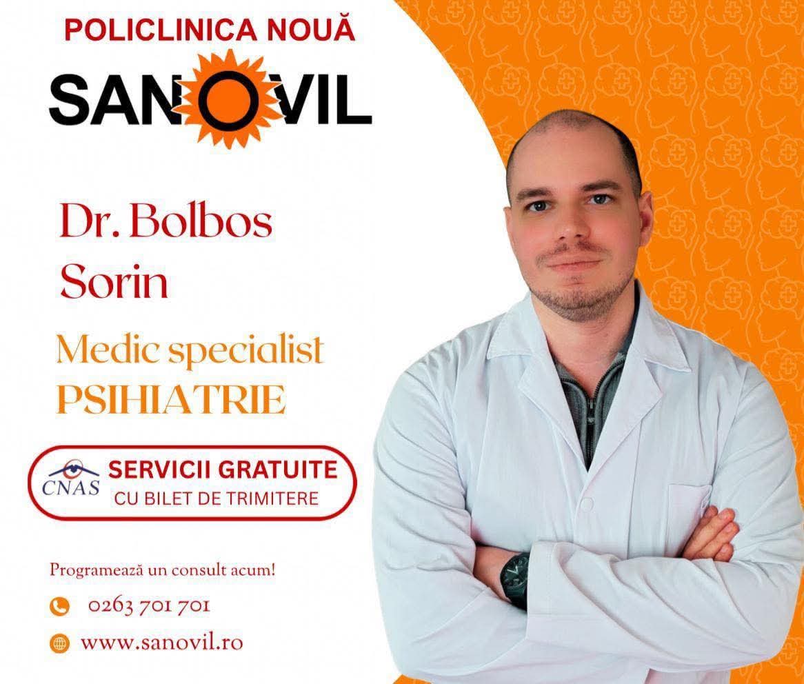 Dr. Bolbos Sorin oferă consultații gratuite la specialitatea Psihiatrie la Policlinica Nouă Sanovil