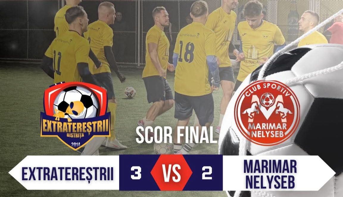 Extratereștrii Bistrița își continuă marșul impresionant în Superliga de Minifotbal din Bistrița și bifează o nouă victorie în retur, după un meci intens câștigat sâmbăta cu scorul de 3-2 în fața formației Marimar Nelyseb.