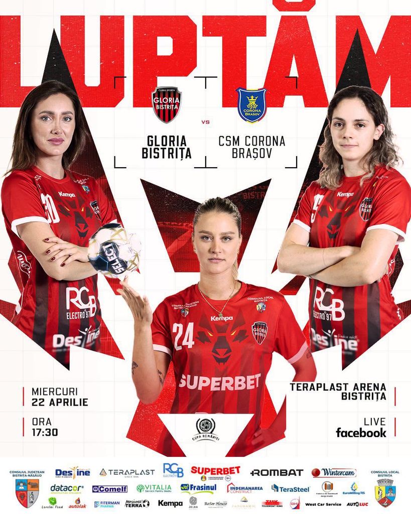 Atmosferă de mare meci la TeraPlast Arena, unde Gloria Bistrița și Corona Brașov se întâlnesc în sferturile de finală ale Cupei României la handbal feminin. Confruntarea este programată miercuri, 22 aprilie, de la ora 17:30, și se anunță una extrem de disputată, având în vedere forma excelentă a ambelor echipe.