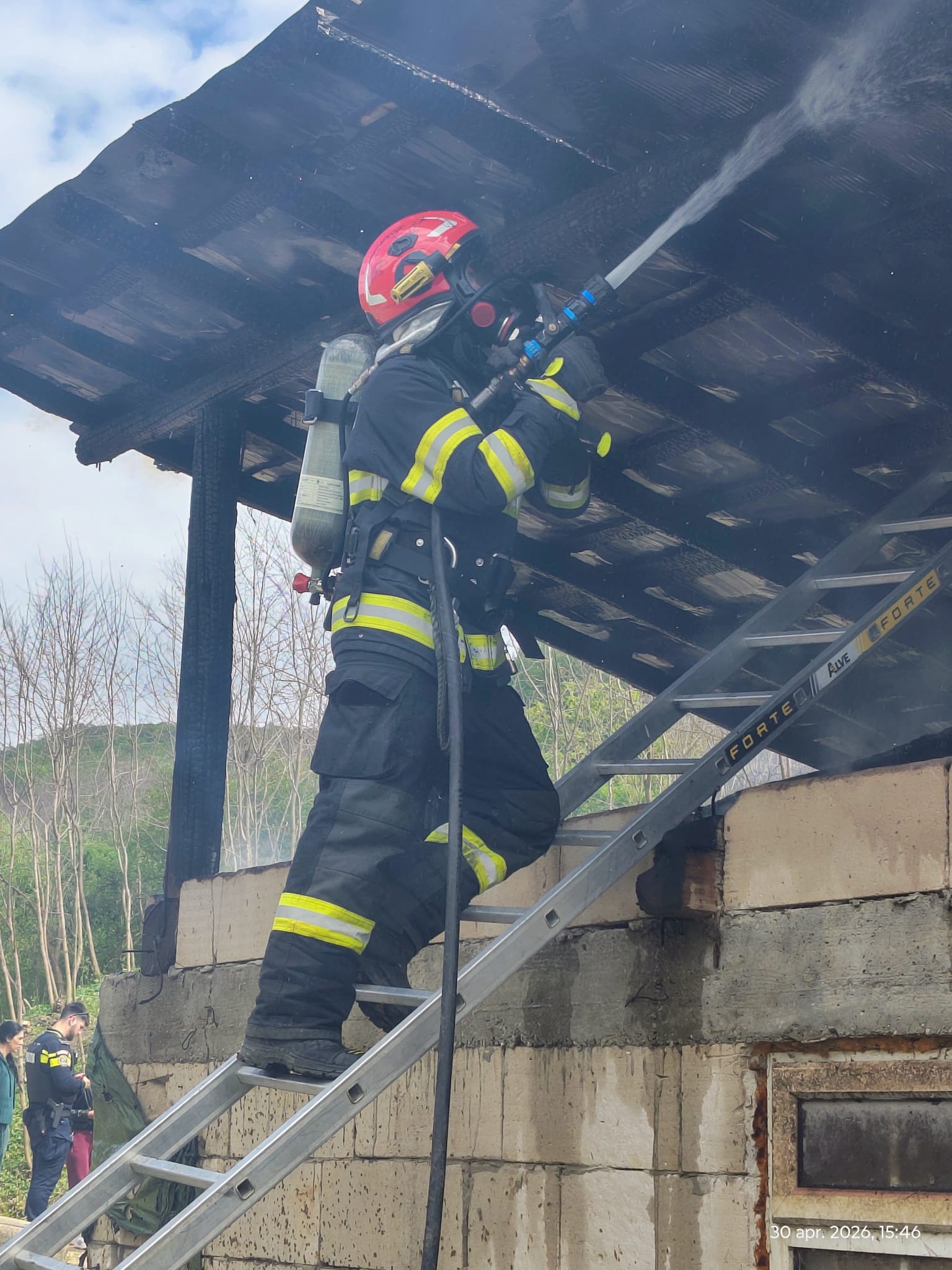 Două echipaje de pompieri și un echipaj de prim ajutor au intervenit astăzi la un incendiu izbucnit la un grajd in localitatea Vermeș.