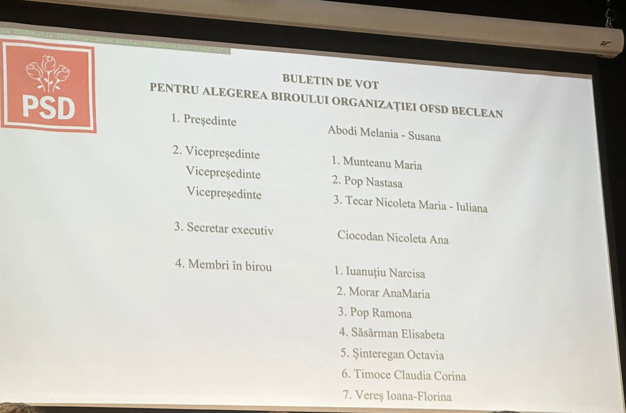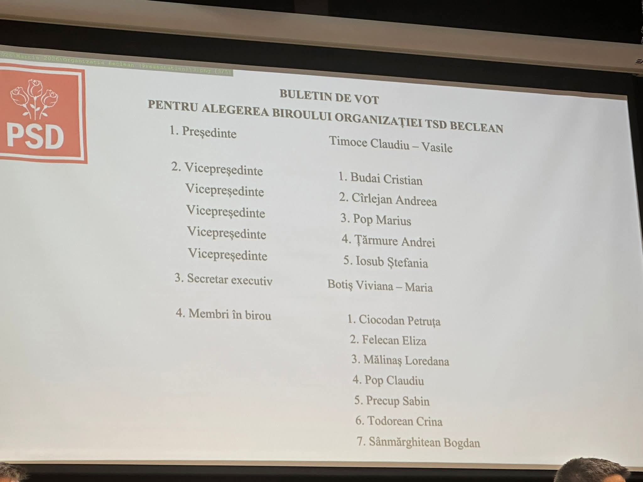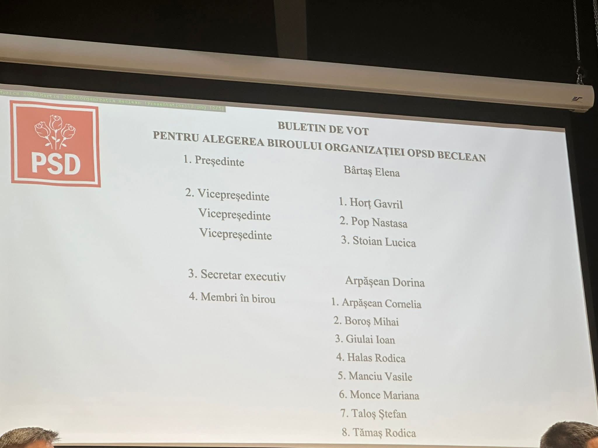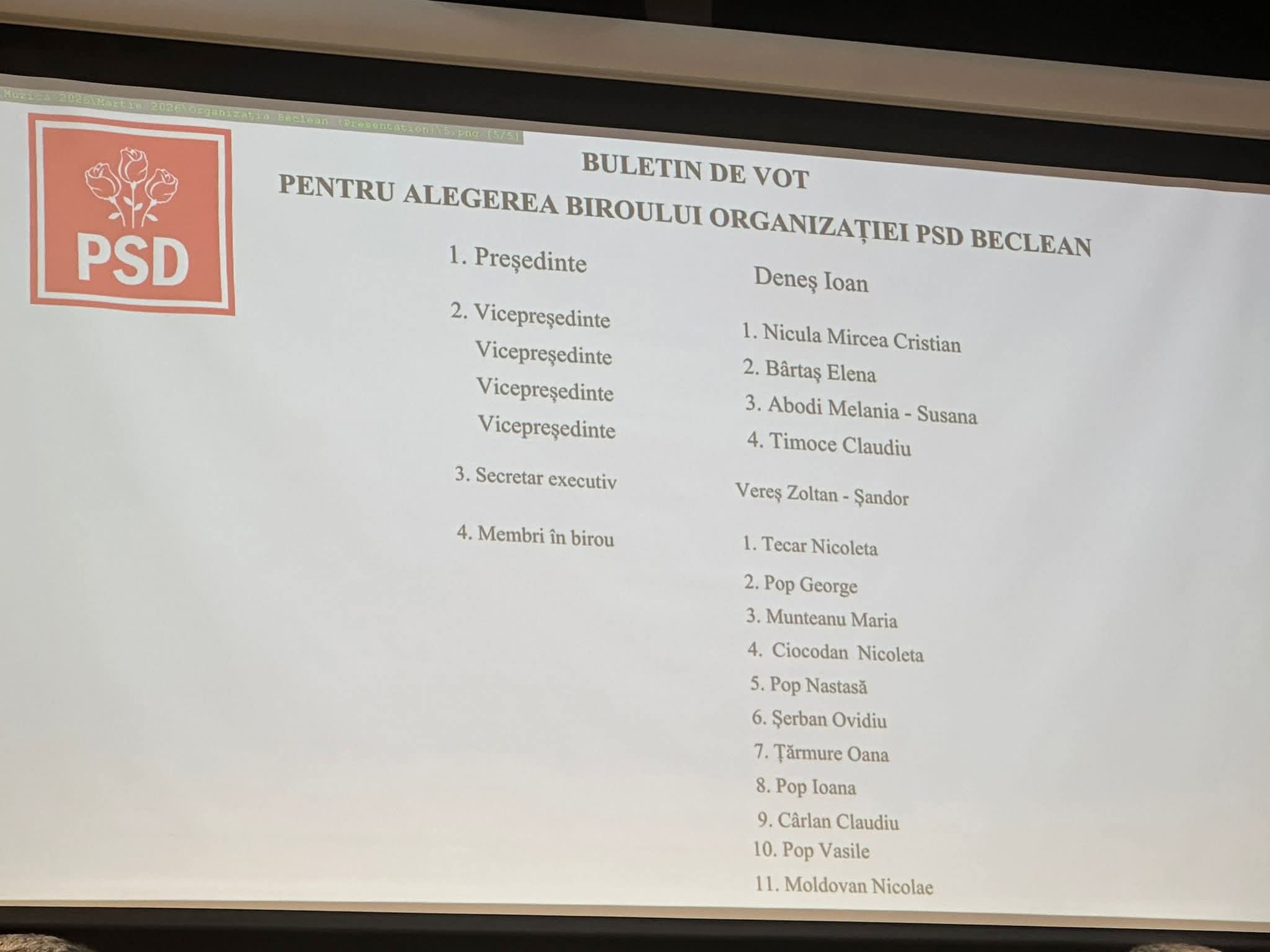 La conducerea PSD Beclean a fost ales Ioan Deneș, fost senator și ministru al Apelor și Pădurilor. Organizația de Femei (OFSD) va fi coordonată de Melania Abodi, în timp ce tinerii social-democrați (TSD) l-au ales ca președinte pe Claudiu Timoce.