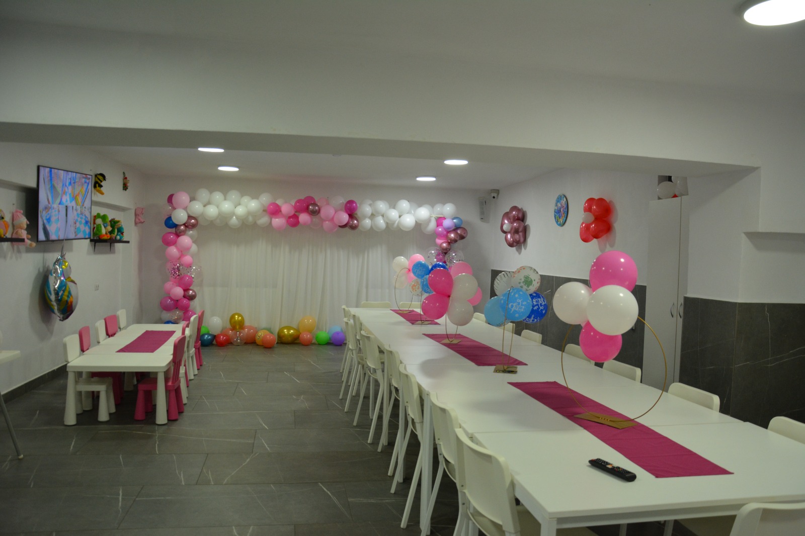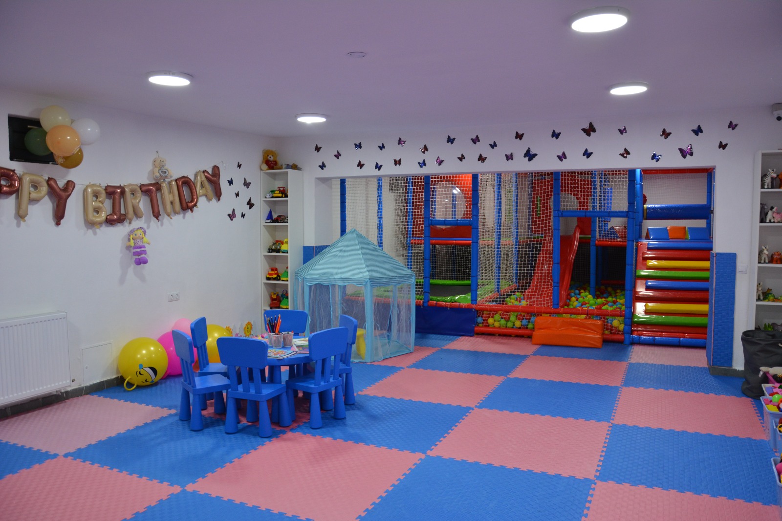 În timpul petrecerilor aniversare, accesul la spațiul de joacă pentru persoanele din afară este stric interzis. Vorbim și despre supraveghere permanentă, cu posibilitatea lăsării copilașului în grija noastră.