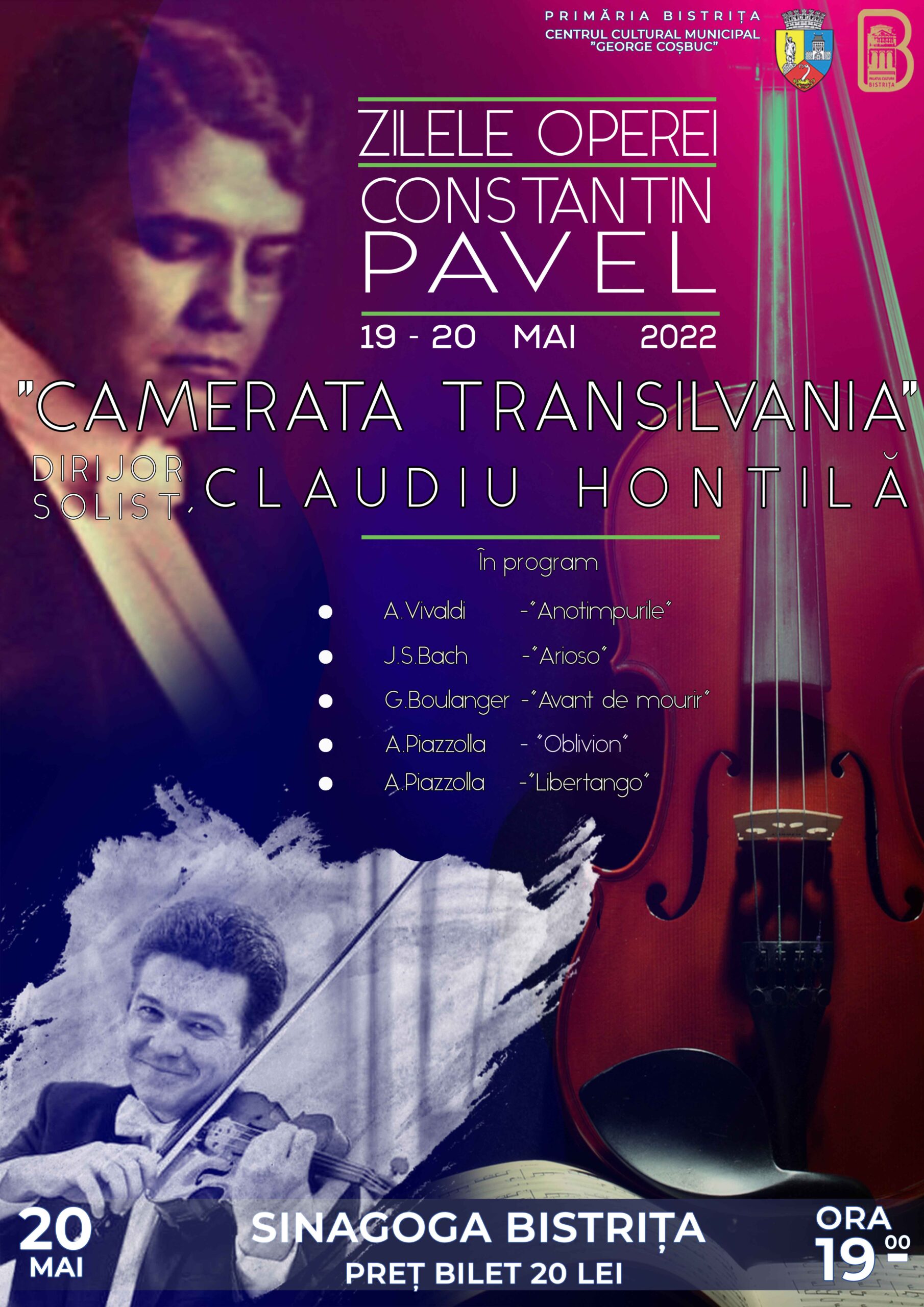 Primăria Bistrița prin Centrul Cultural Municipal ”George Coșbuc” din Bistrița organizează în perioada 19 – 20 Mai 2022, la Sinagoga Bistrița, Zilele Operei ”Constantin Pavel” ediția 2022.