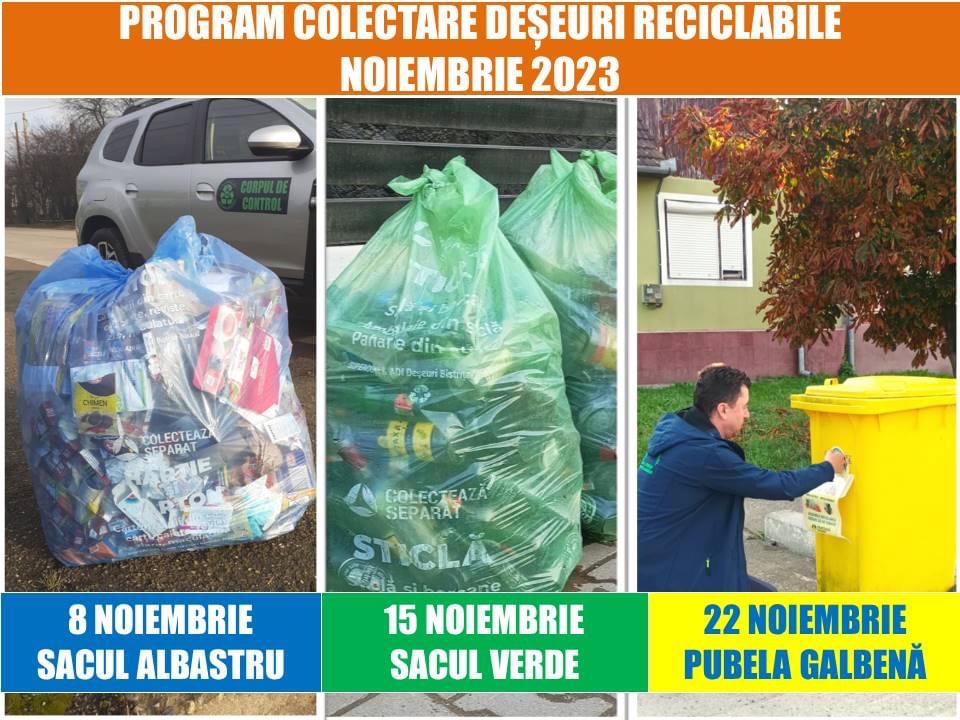 Programul de colectare a deșeurilor reciclabile în Bistrița și localitățile componente, în luna noiembrie