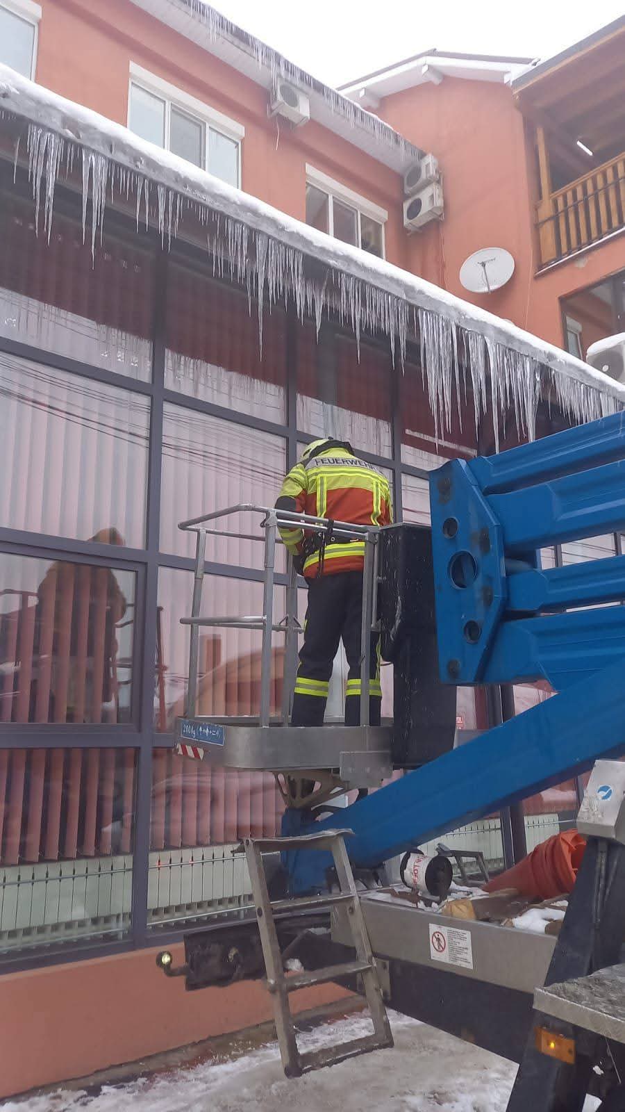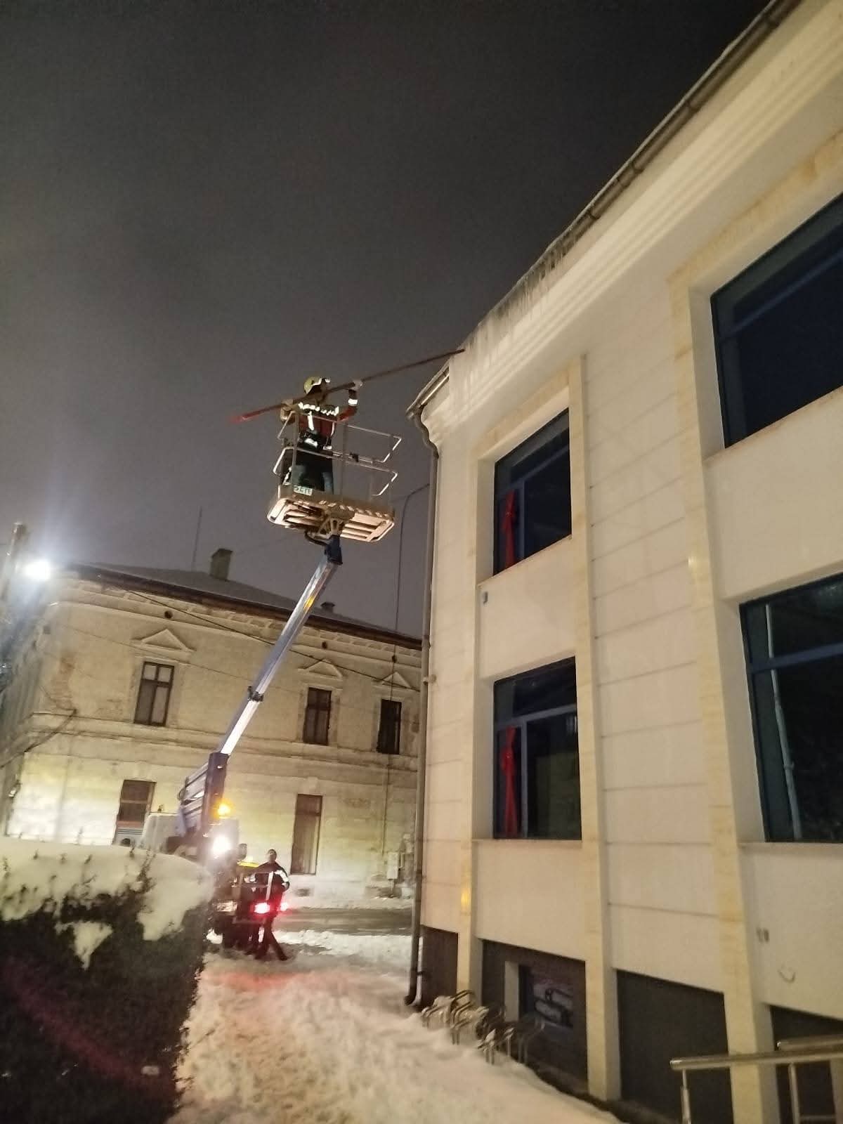 SVSU Bistrița, în lupta cu țurțurii de gheață. Intervenții pentru siguranța cetățenilor. FOTO