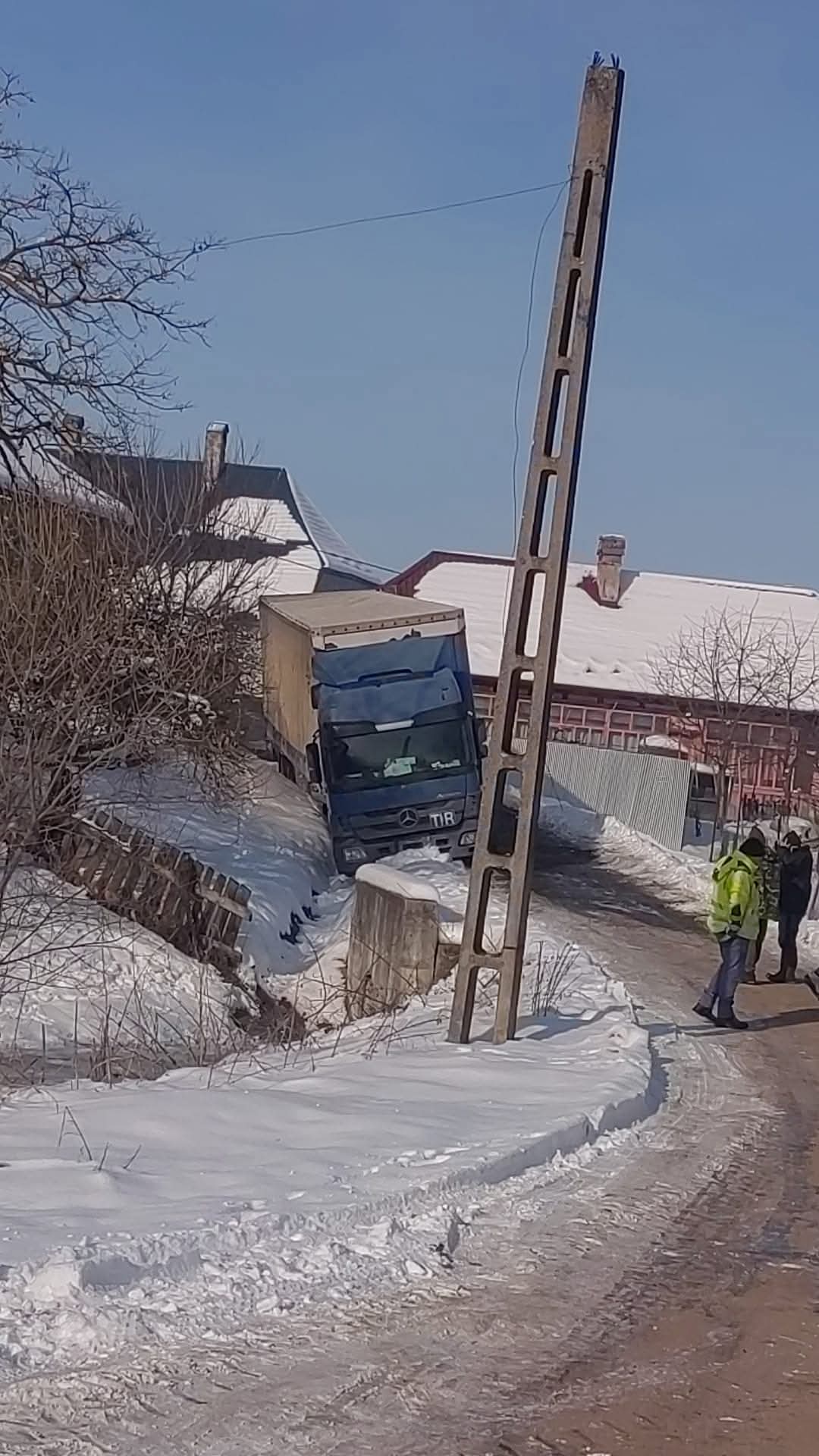 Astăzi, în comuna Budacu de Jos, a avut loc o intervenție atipică, dar încheiată cu succes. Un TIR înmatriculat în Turcia, indus în eroare de sistemul de navigație, a ajuns pe drumul de exploatare agricolă Simionești – Buduș, unde a părăsit carosabilul și a rămas blocat în șanțul de pe marginea drumului.