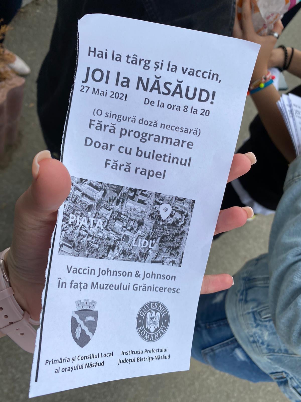 Din primele informații, campania de vaccinare cu serul Johnson&Johnson de la Năsăud se desfășoară în pași alerți. Printre cetățenii dornici de imunizare se află și prefectul Stelian Dolha, împreună cu subprefectul Lorand Toth. Până la ora (11.30), campania se dovedește a fi un succes, fiind vaccinate 150 de persoane.